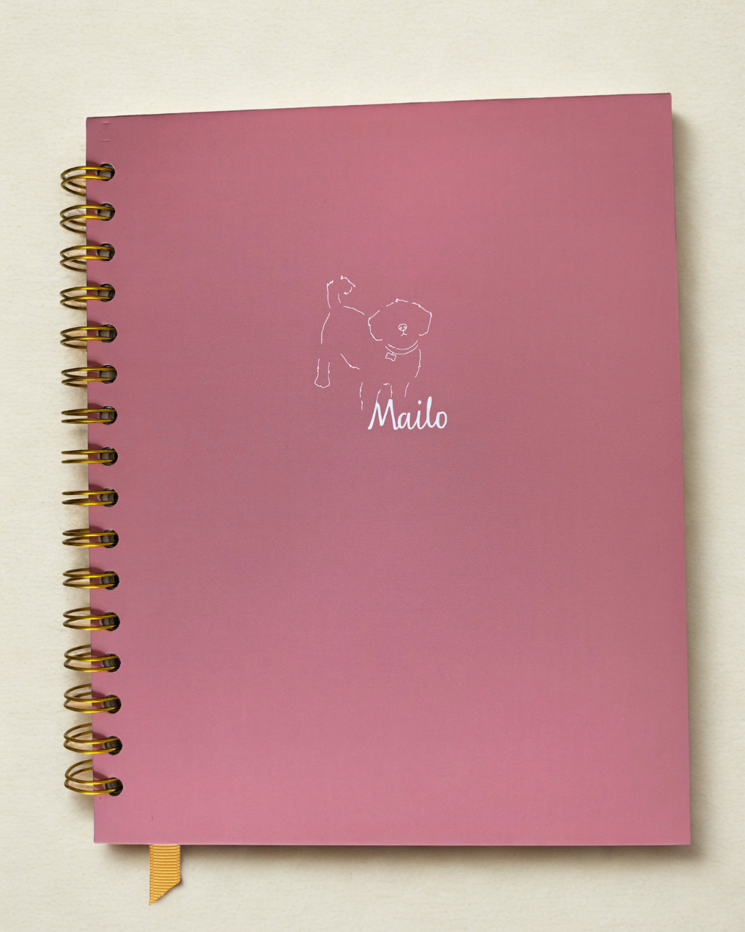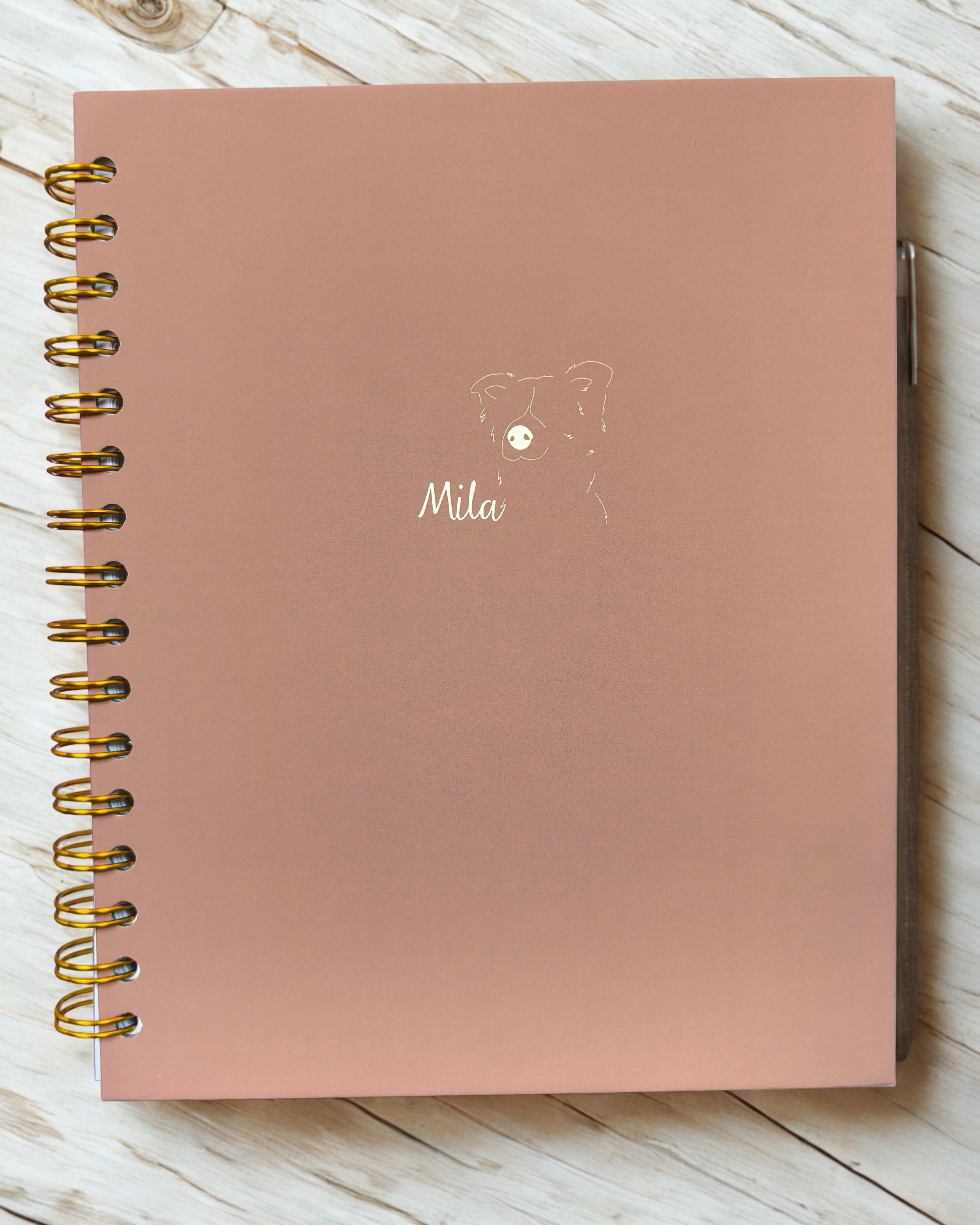 Agendas y libretas personalizadas con el dibujo y nombre de tu mascota en la portada. Con tu compra, donamos alimento a refugios y albergues de perritos y gatitos rescatados.